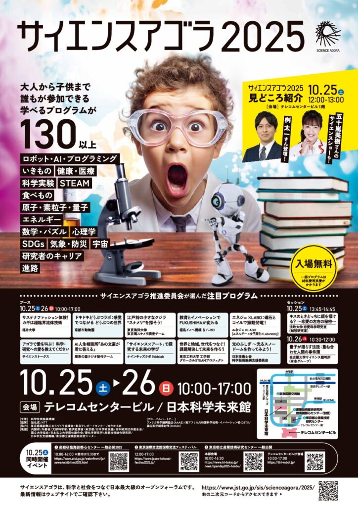 - イベント公式ページ:https://www.jst.go.jp/sis/scienceagora/2025/index.html